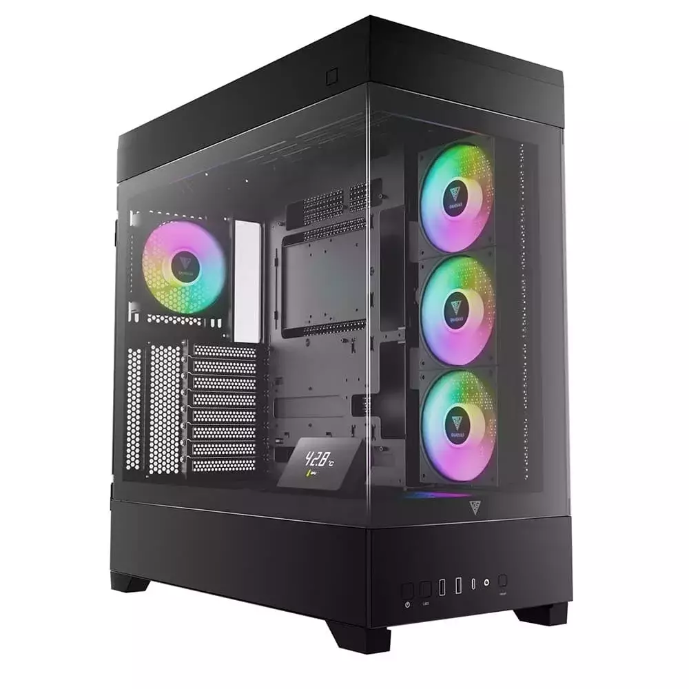 O Gabinete Gamer Gamdias Atlas P1 ARGB Preto eleva o visual do seu setup a outro nível! Com painéis frontal e lateral em vidro temperado, você tem uma vista quase ininterrupta dos componentes internos, destacando cada detalhe do seu hardware com elegância e modernidade. Ideal para quem valoriza um visual limpo, sofisticado e quer exibir a potência do seu PC.